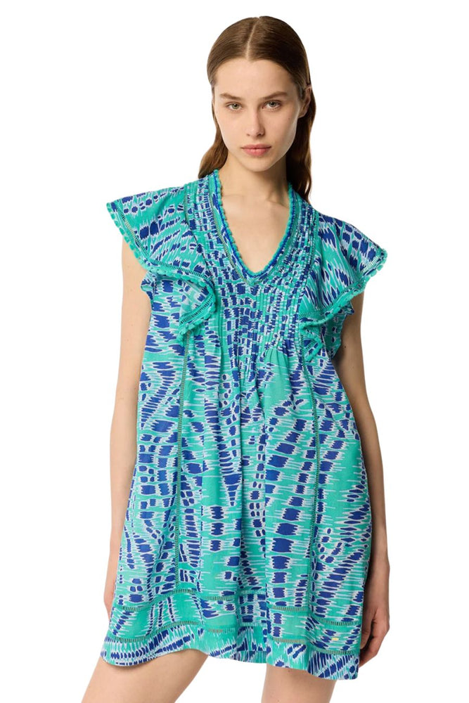 Waldorf Ruched-Sleeve T-Shirt in Ice Blue Multi