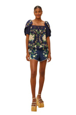 Lollie Floral Button-Down Blouse in Dark Hunter Green Multi