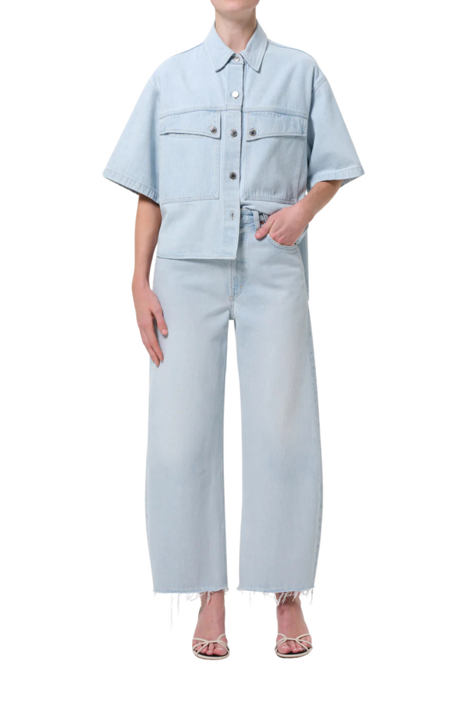 Kasey Patch-Pocket Wide-Leg Jean in Ecru