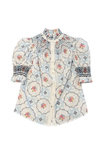 Amelia Long Sleeve Embroidered Blouse in Lake/Navy