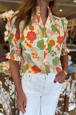 Amelia Short Sleeve Blouse in Pink/Ivory