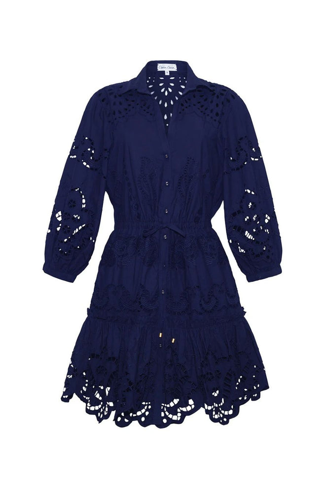 Marcie Cotton Boucle Mini Dress in Deep Navy