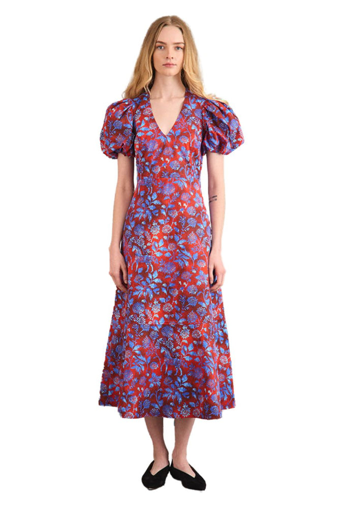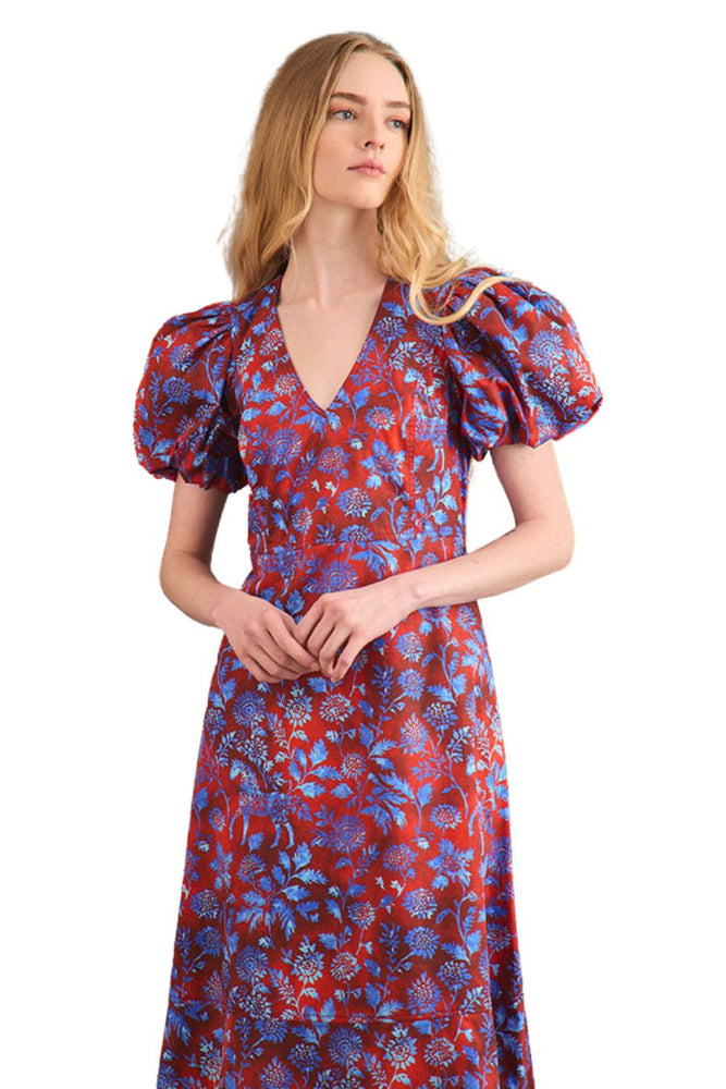 Ninet Cotton Midi Dress in Magical Blossom Blue