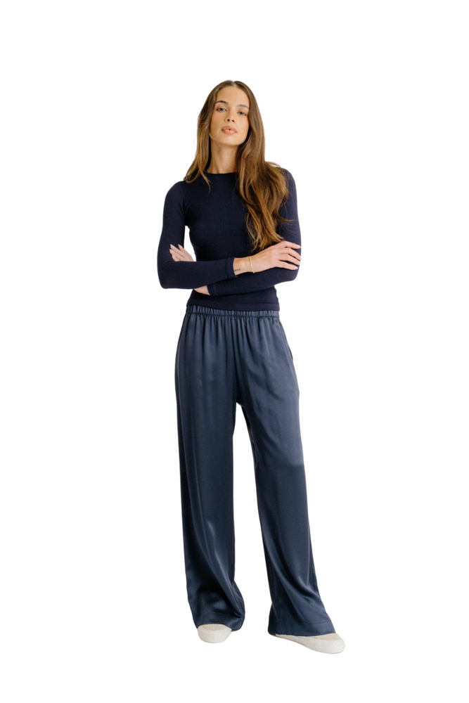 Brynn Wide Leg Silk Pant in Sacramento