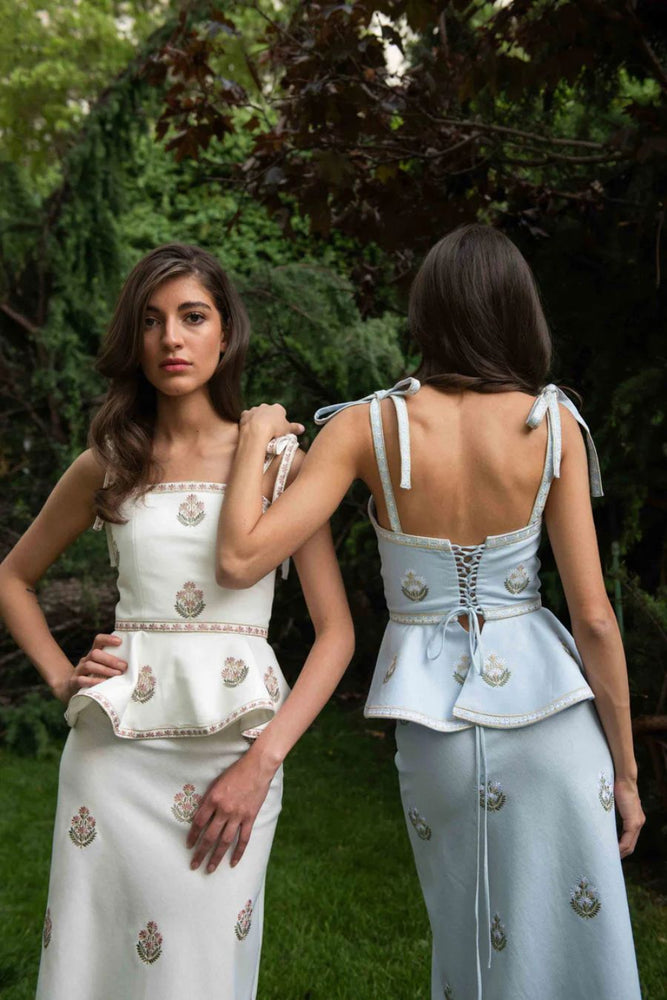 Sold outVendor:Rosewater HouseBegum Skirt in Light Blue & White