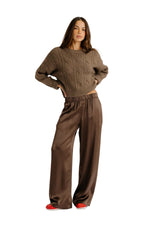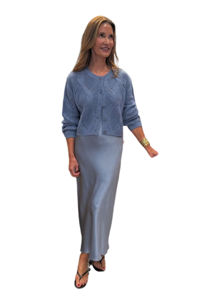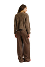 Jolie V-Neck Cropped Cashmere Cable Knit Cardigan in Sacremento