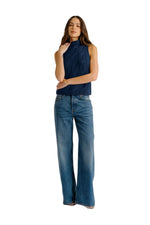 Emilia Shoulder Pad Cardigan in Midnight Navy