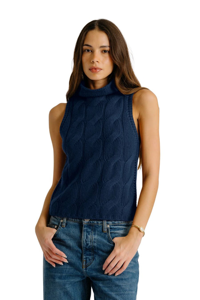 Kara Shrunken Cable Knit Tank in Periwinkle Blue