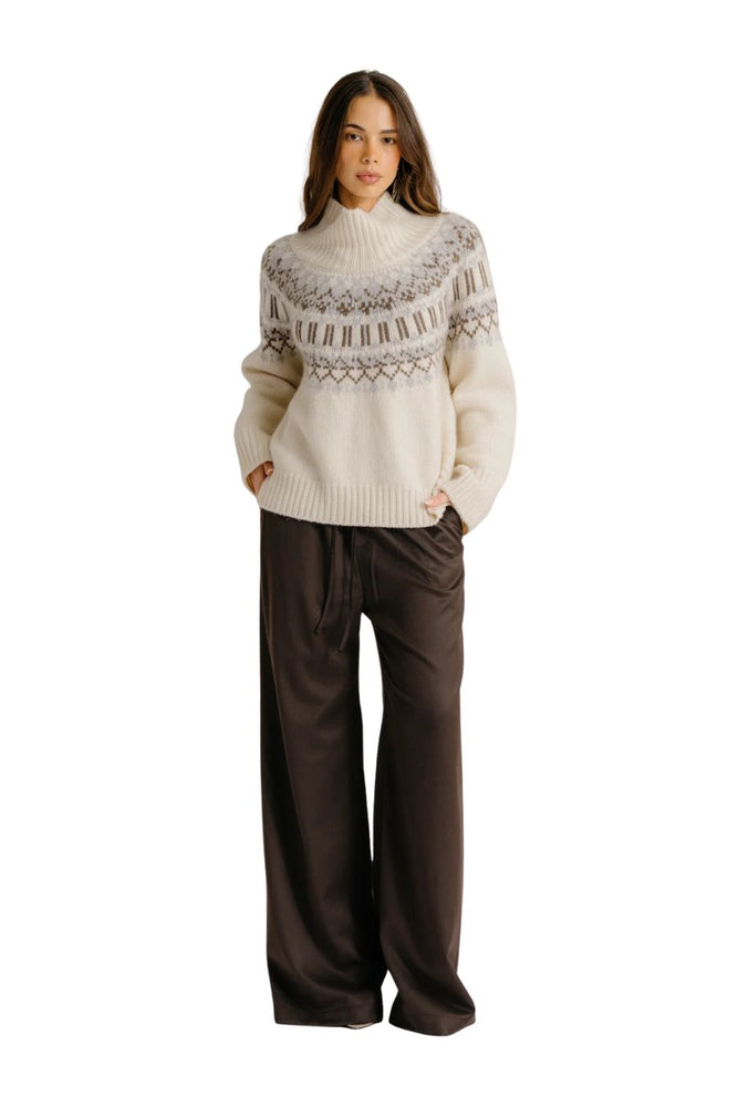 Scottie Slouchy Fair Isle Cashmere Mock Neck in Gardenia Fair Isle