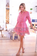 Sophia Smocked Shirt Dress in Fuschia