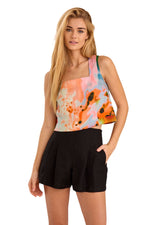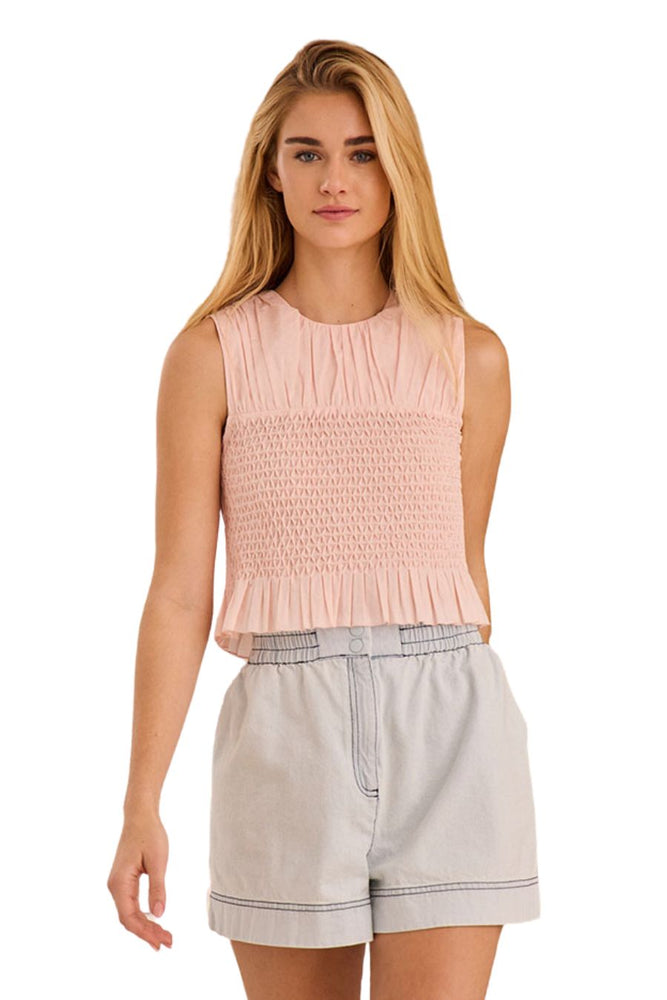 Waldorf Ruched-Sleeve T-Shirt in Ice Blue Multi