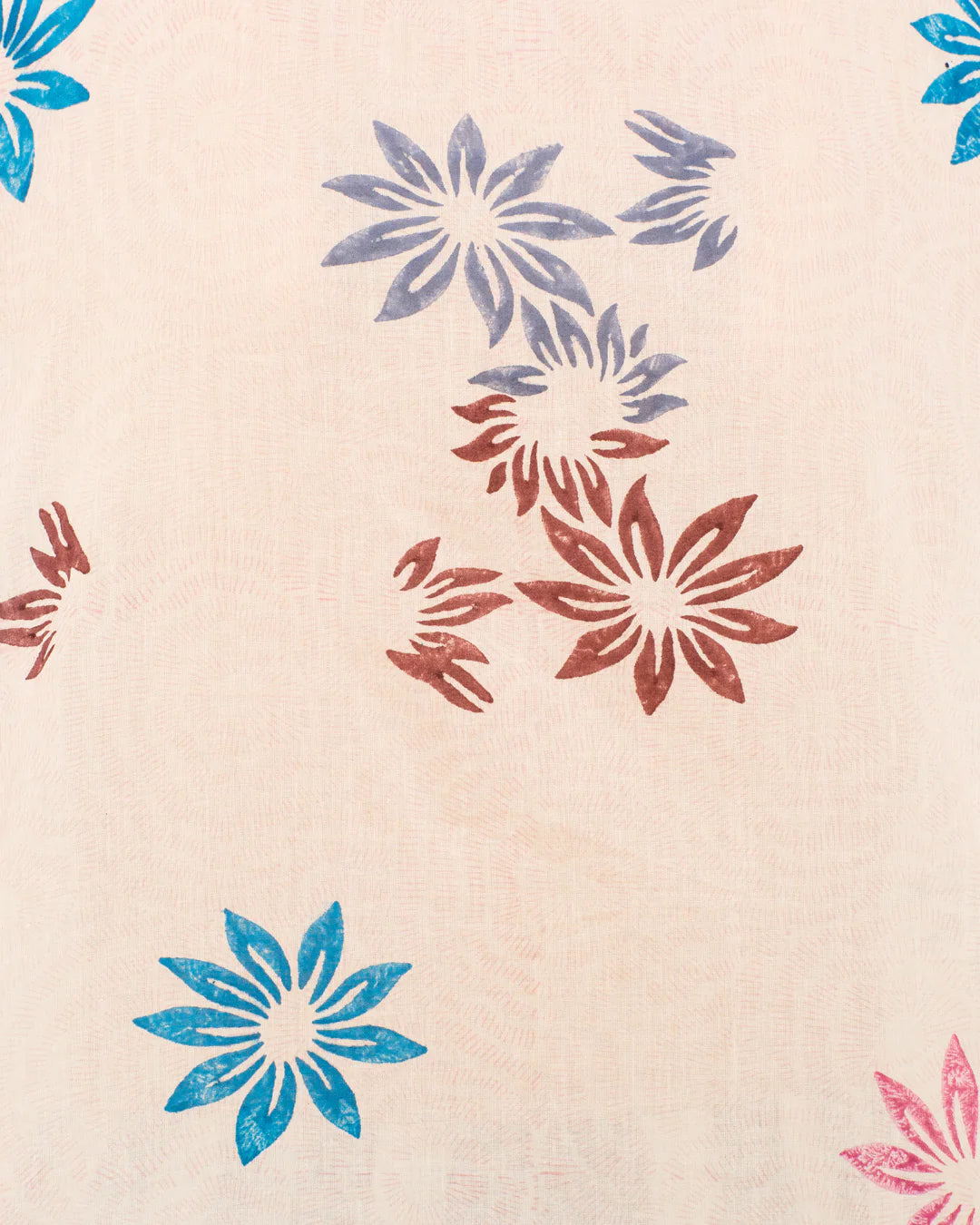 This textile was block-printed by hand. Subtle printing and dye variations are part of the unique beauty of the garment and a signature of the artisan's hand.