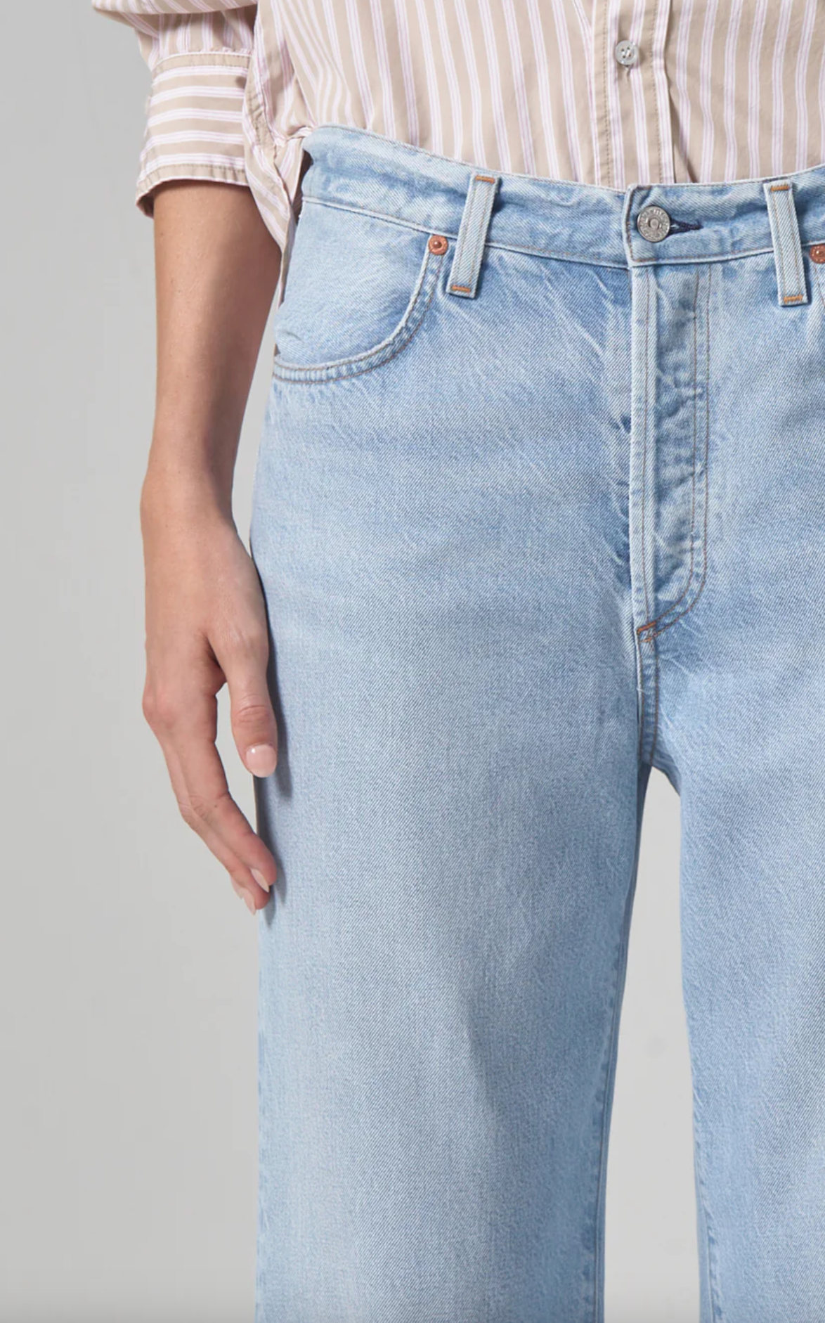 An easy silhouette with endless vintage appeal. The Annina sits high on the waist with an easy and relaxed top block. This subtle wide leg and 30" inseam elongates the body while offering the perfect length to wear with heels or sneakers.