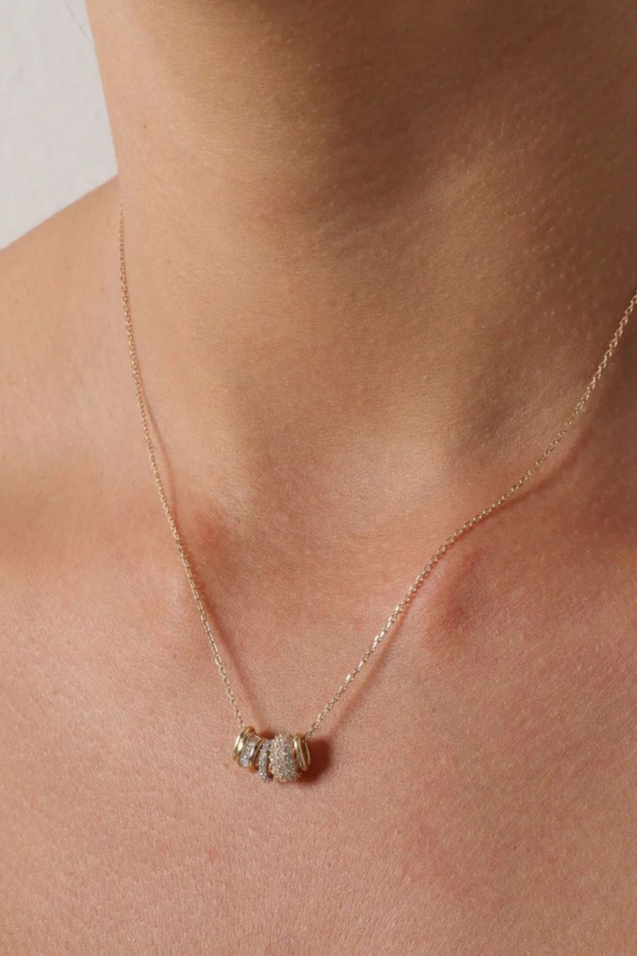 - Mini Beads Included: 2 - 14k yellow gold solid beads, 1 - 14k yellow gold hand-set pavé mini diamond, 1 - 14k yellow gold channel-set baguette mini bead, 1 - 14k yellow gold wide pavé diamond mini bead