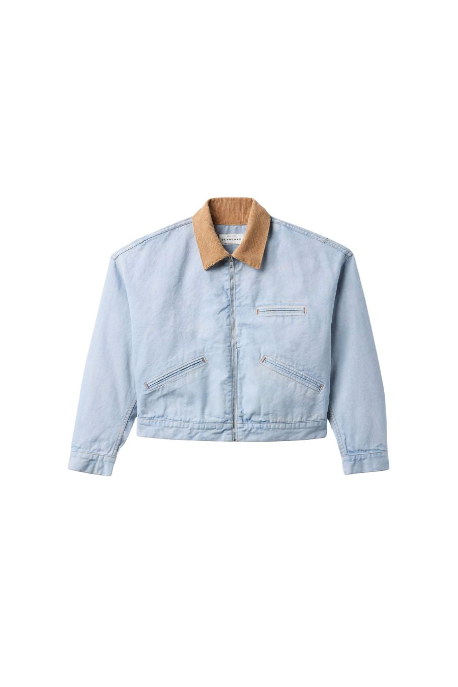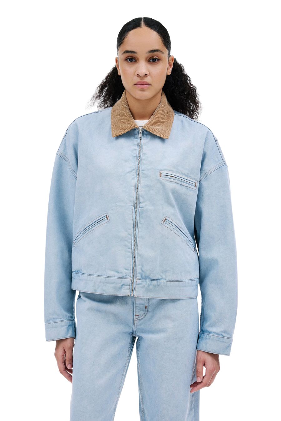 Camden Garage Jacket is crafted from cotton canvas and features a tonal corduroy collar and front zip pockets, offering a vintage and effortless fit.