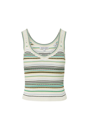 An essential, elevated. The Carlin v-neck tank top is spun from a premium stretch blend for a close, flattering fit. Wide straps and multicolor stripes, in vibrant green and white, complete the look. Perfect for layering or wearing solo, it’s versatile enough for both getaways and everyday wear.