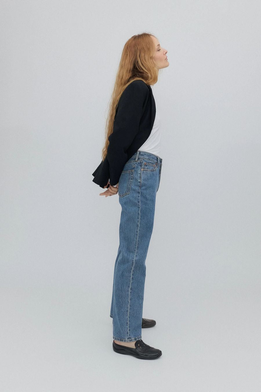 The Childhood Jean is inspired by the "anti-fit" simplicity of your favorite childhood jeans. It's a straight leg, super high-rise, wedgie fit. It features a traditional button fly, custom hardware, and our signature 'SH' embroidery.
