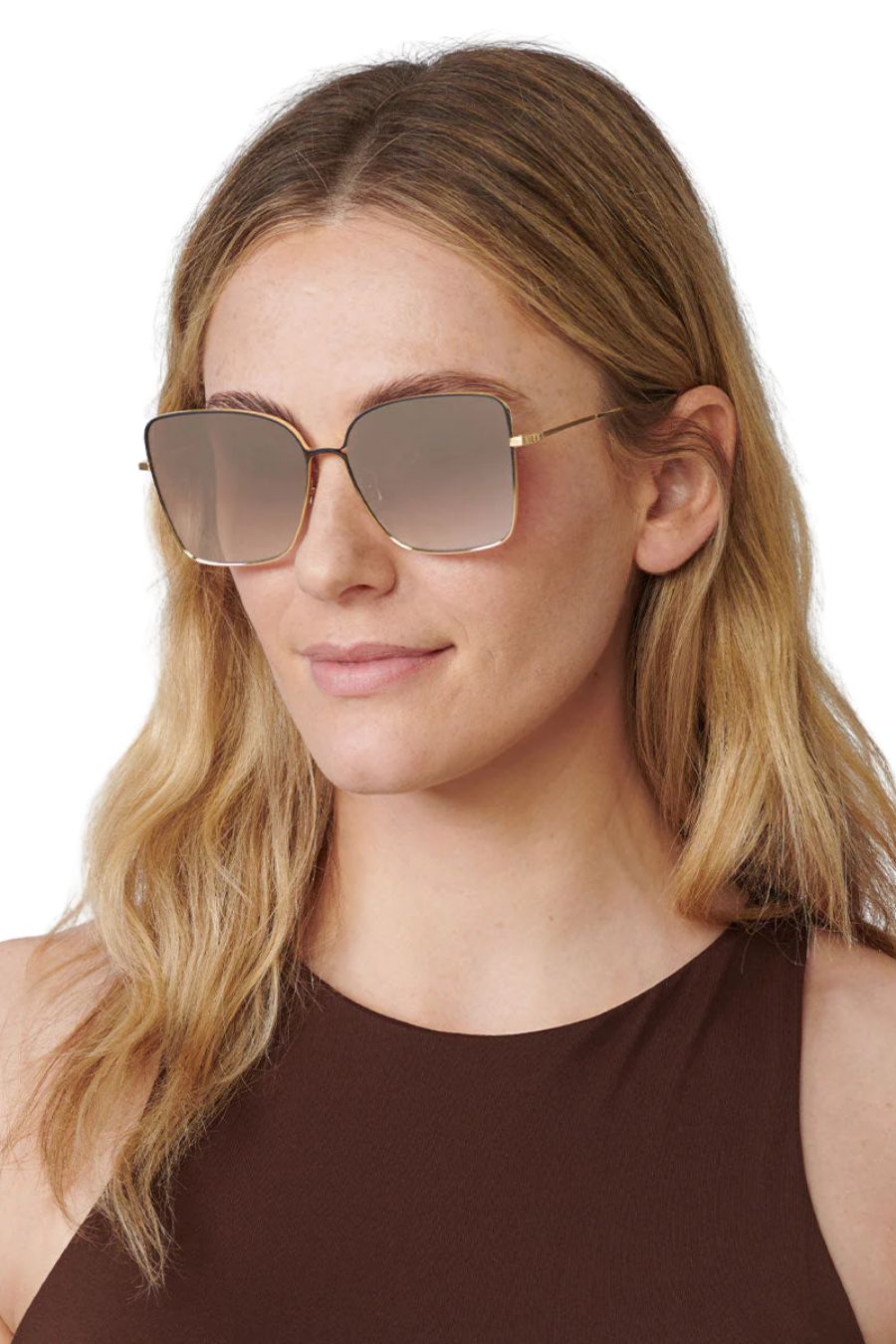 • This handcrafted frame is a combination of glossy, 24K gold-plated stainless steel hardware and glossy acetate temple tips