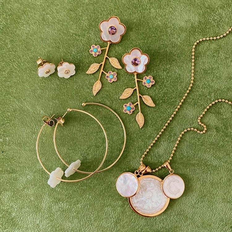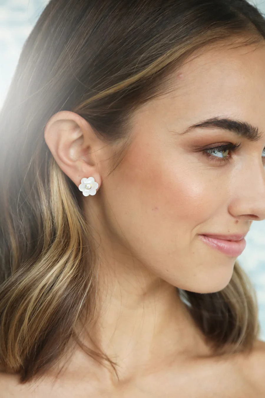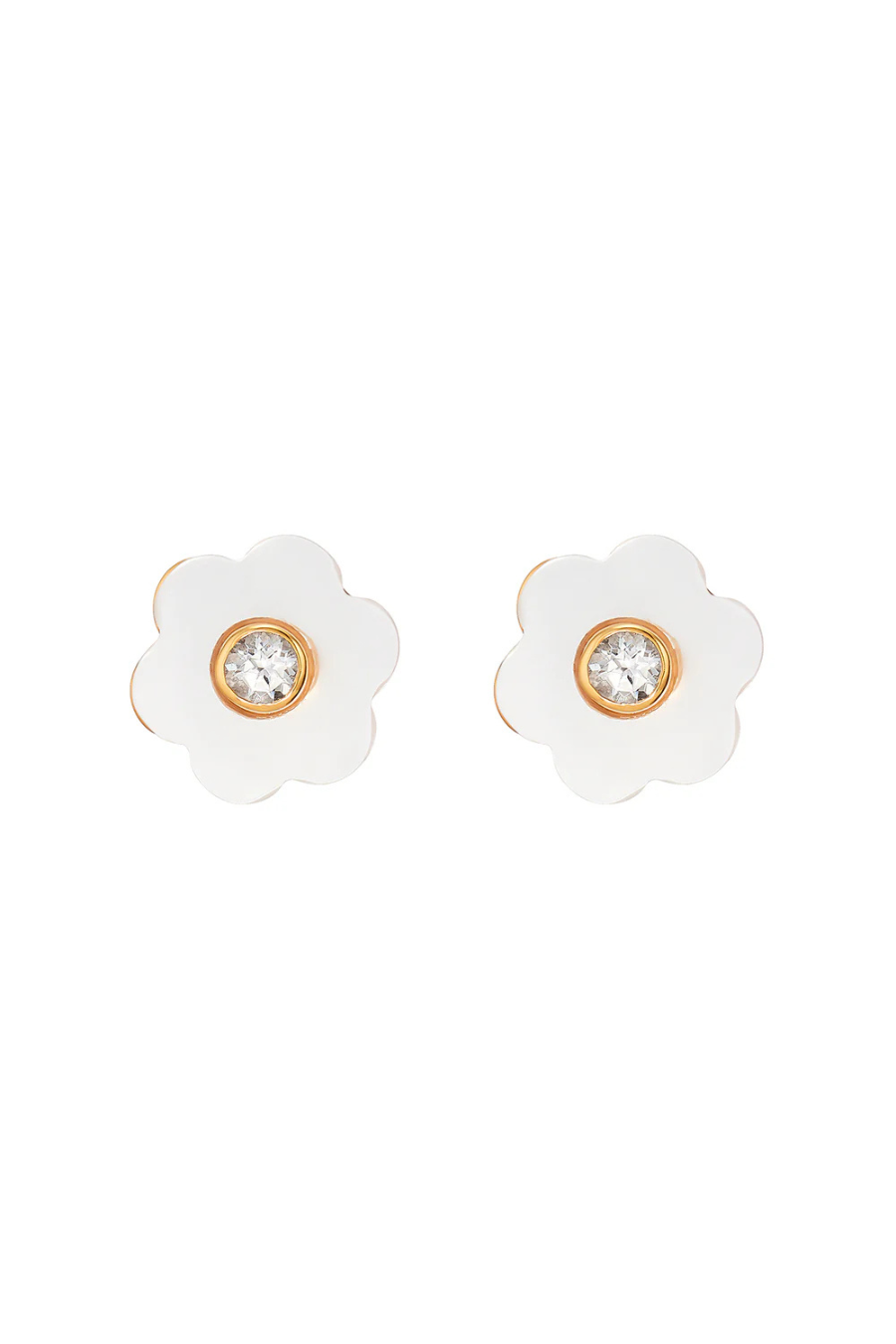 14k gold dipped garden stud earring in mother of pearl and white topaz .5"