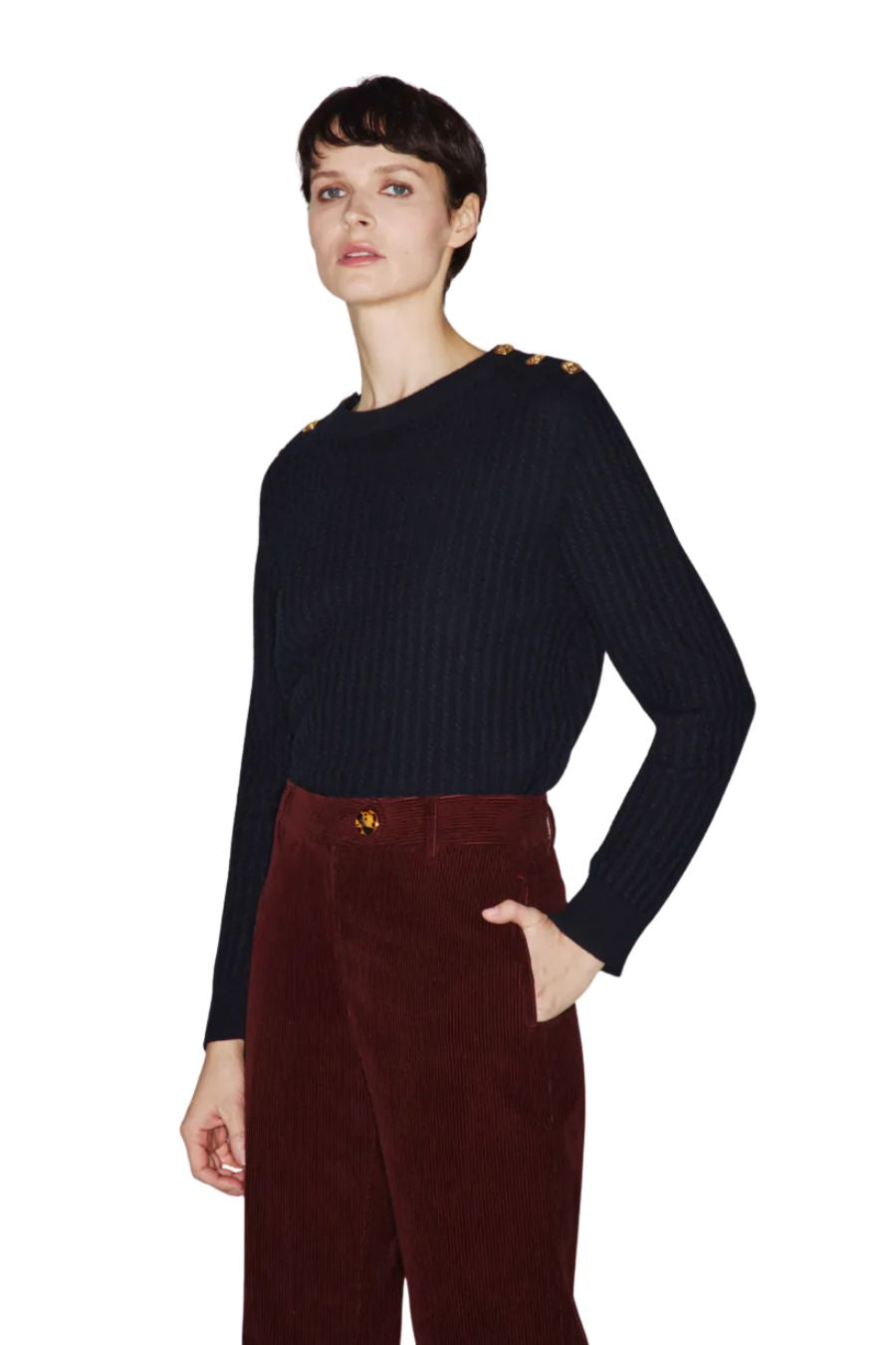 A luxurious, relaxed-fit wool and cashmere blend round neck sweater. It’s a versatile, year-round wardrobe staple.