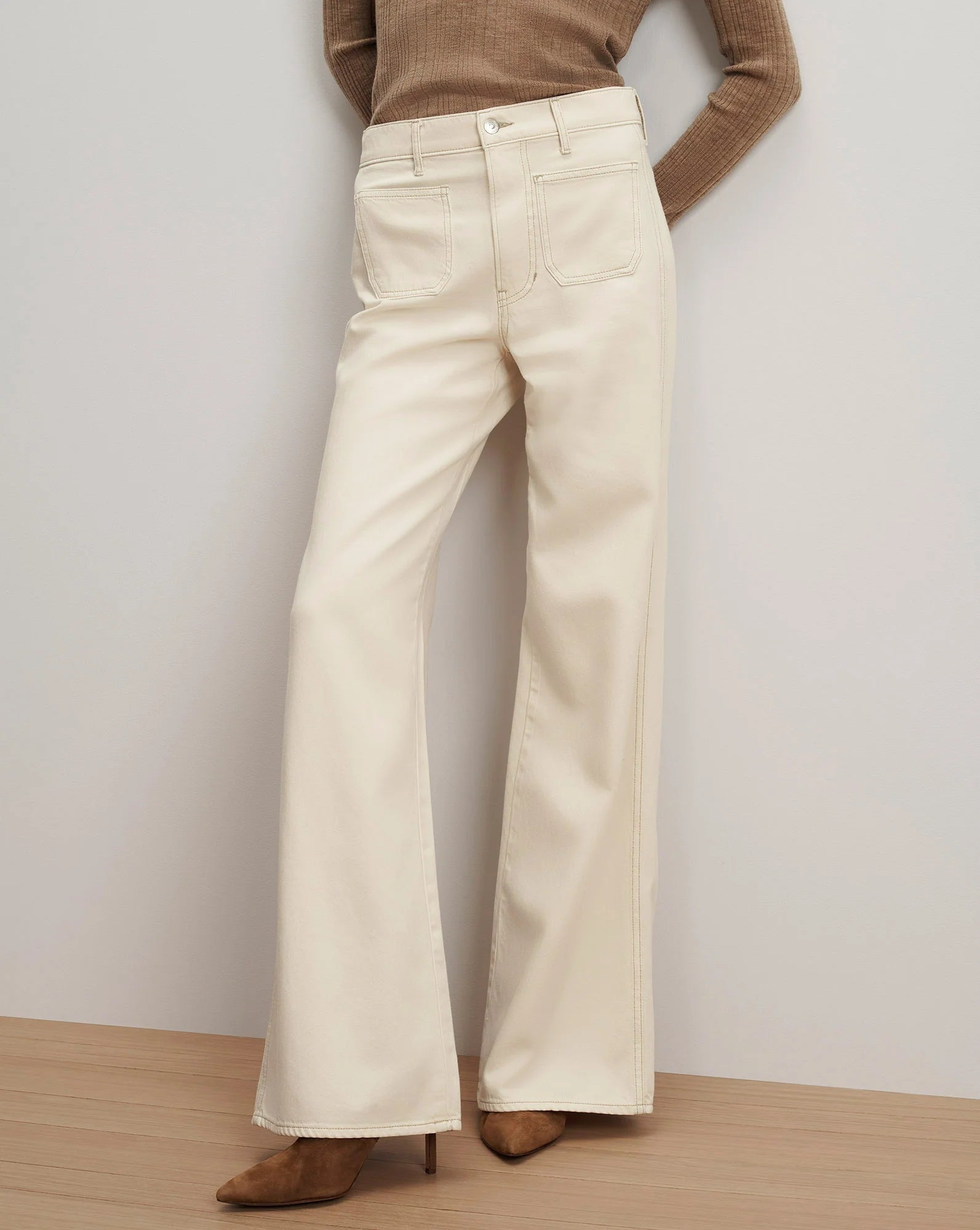 Kasey Patch-Pocket Wide-Leg Jean in Ecru