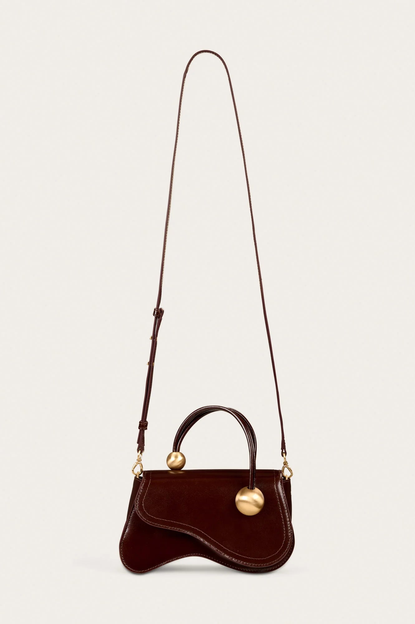 A sculptural leather silhouette with a convertible crossbody strap with a magnetic snap and back pocket.