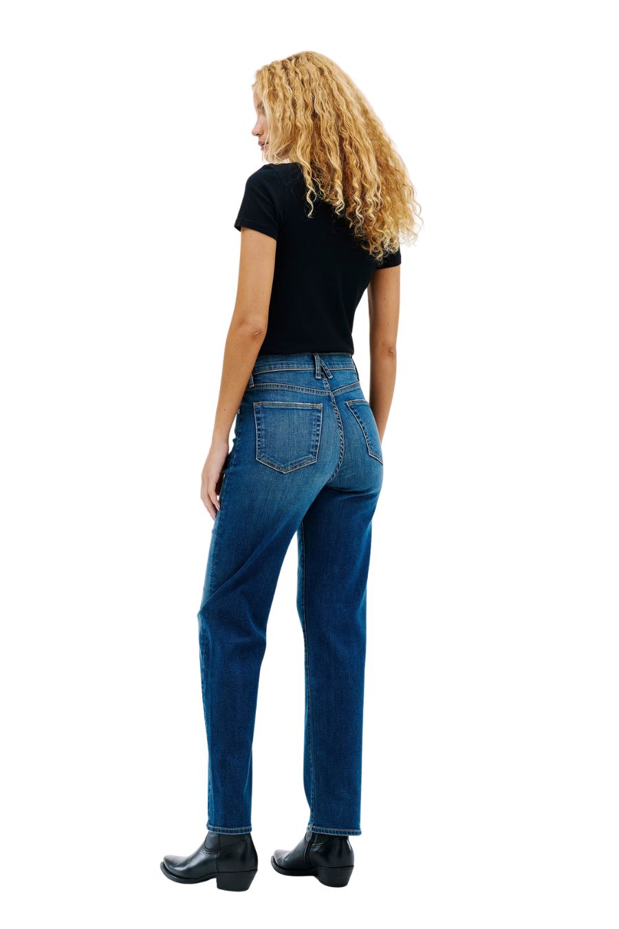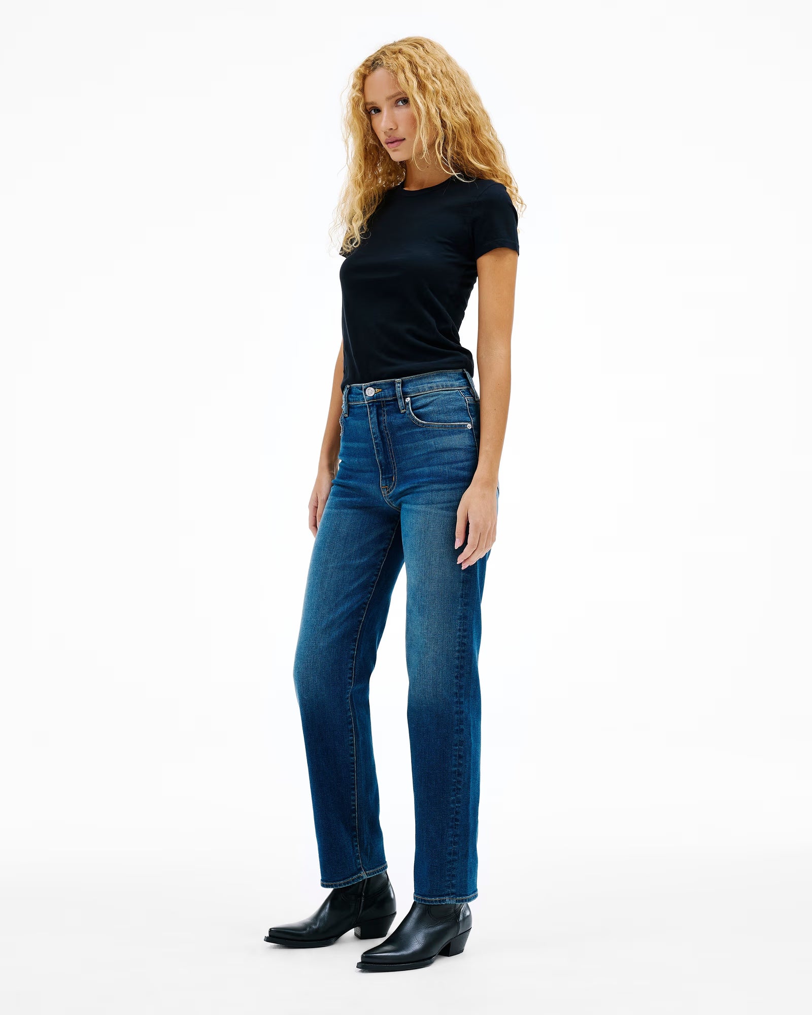 This signature style is designed to fit and flatter the feminine form, visually elongating the leg with a straight leg silhouette and high rise.