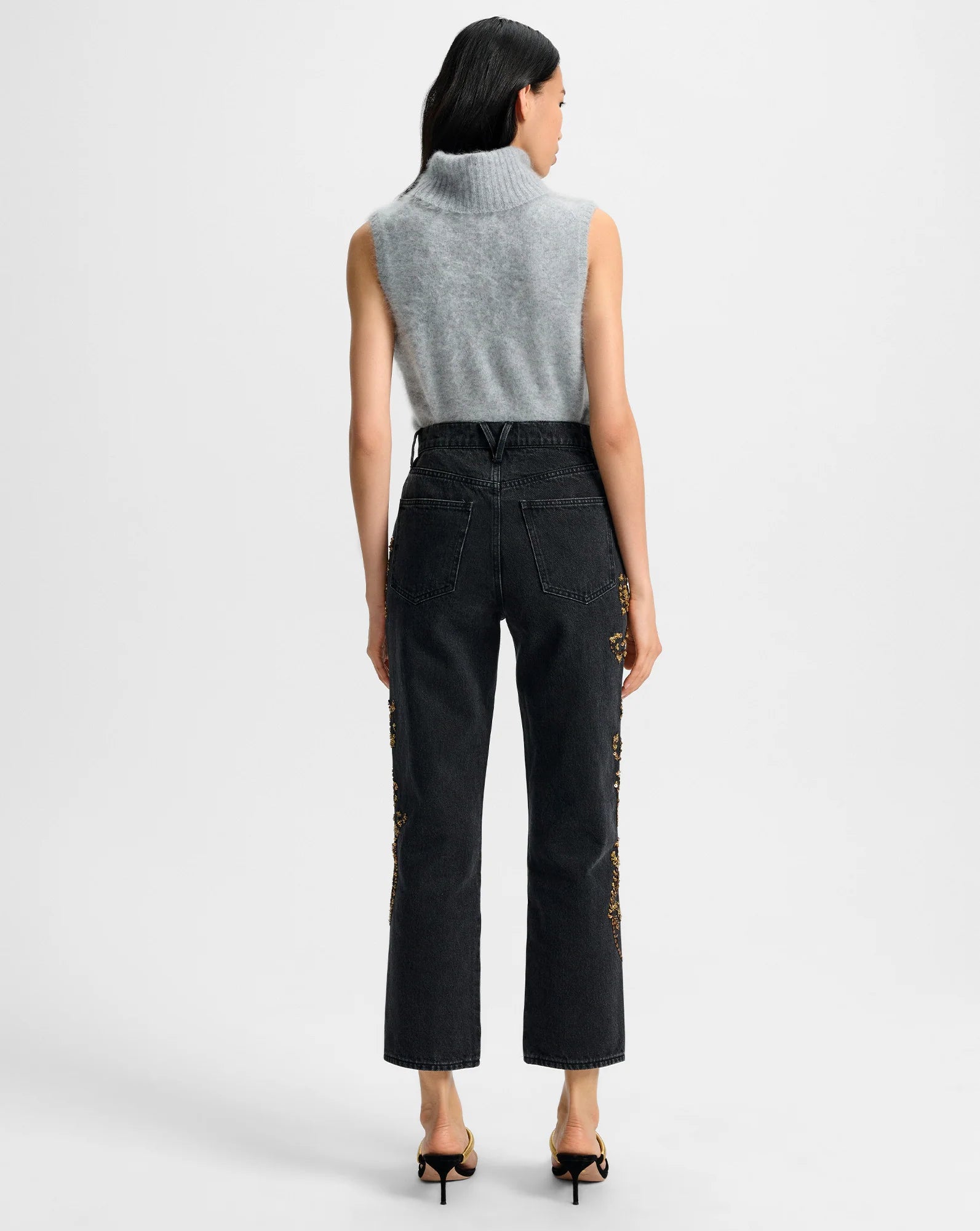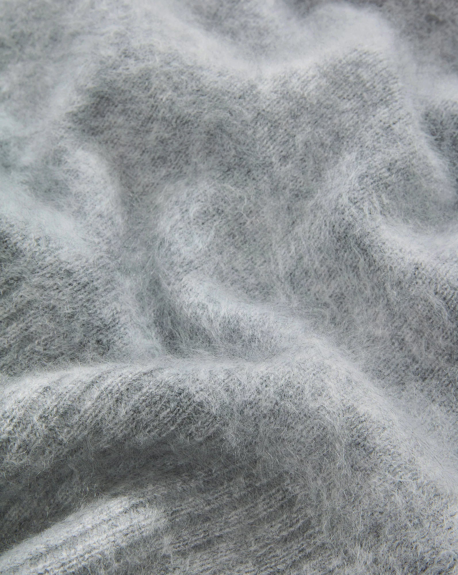 Essential to any wardrobe, the Mazzy is the ultimate luxury staple. Crafted from plush, brushed cashmere in heather grey black, it has an exceptionally soft hand feel. A ribbed turtleneck and trim give it a preppy polish, while its relaxed shape is effortless. Whether layered under a jacket, over a long-sleeve T-shirt, or worn on its own, it's a go-to black sweater with endless styling options.