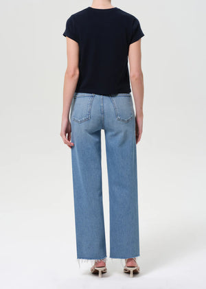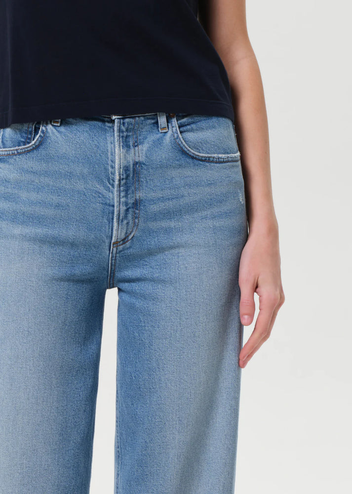 AGOLDE's Ren jeans are crafted with EcoMade Fiber, combining regeneratively grown cotton, Eco-Indigo dye, and plant-based LYCRA® EcoMade Fiber to set a new standard for sustainable denim. Offering a relaxed fit with a high-rise waist and cropped wide legs, these jeans are perfect for casual days. Pair them with a half-tucked tee or sleek bodysuit for an effortlessly chic look.