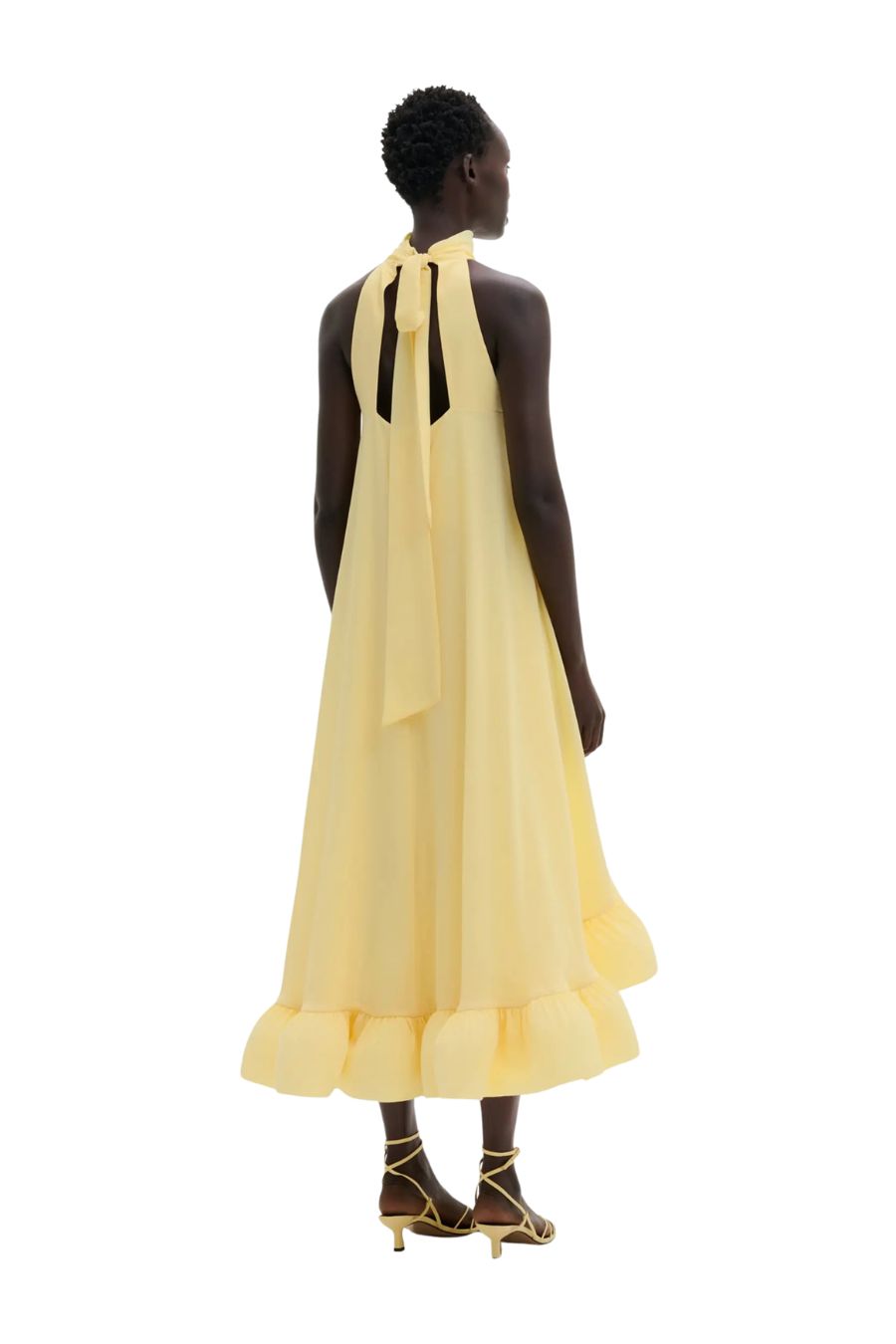 Halterneck maxi dress that ties at the back with a flowy ruffled hemline.•   Ruffled hem