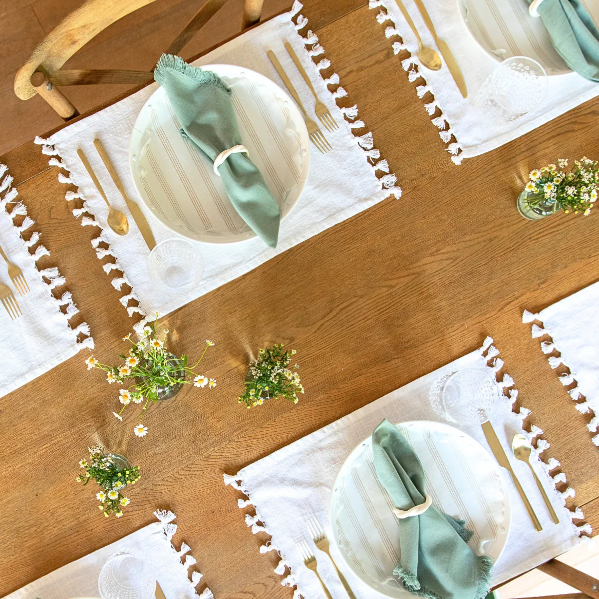 We love neutrals and the simple, classic look of our "Sandy Stripes" liners.  They are perfect when using a patterned placemat or napkin or try layering them under our "Pumpkin Spice", "Oh Deer", or "Under the Sea" starfish liners for a festive look.