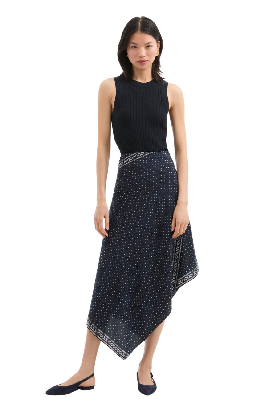 The slingback flat—with a VB twist. Crafted from premium navy suede, Shina is a sleek pointed-toe ballet flat featuring a stretch-gore ankle strap with our signature Dash belted hardware. A subtle quarter-inch heel finishes the look, adding an extra layer of support. A slingback pump style with day-to-night versatility, it pairs well with cropped denim and tailored trousers alike.