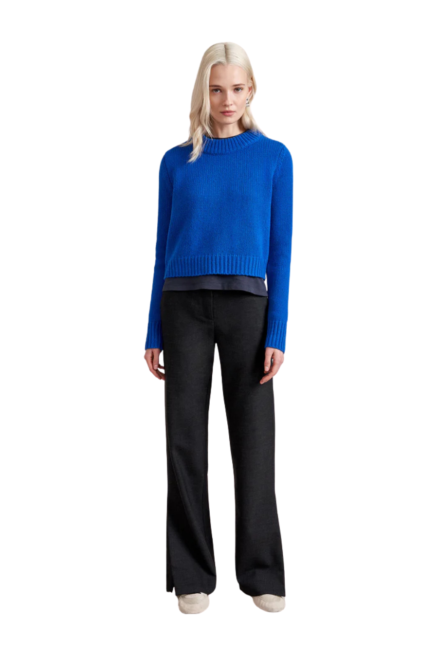 Striped Lean Lines Cardigan in Cream/Cobalt