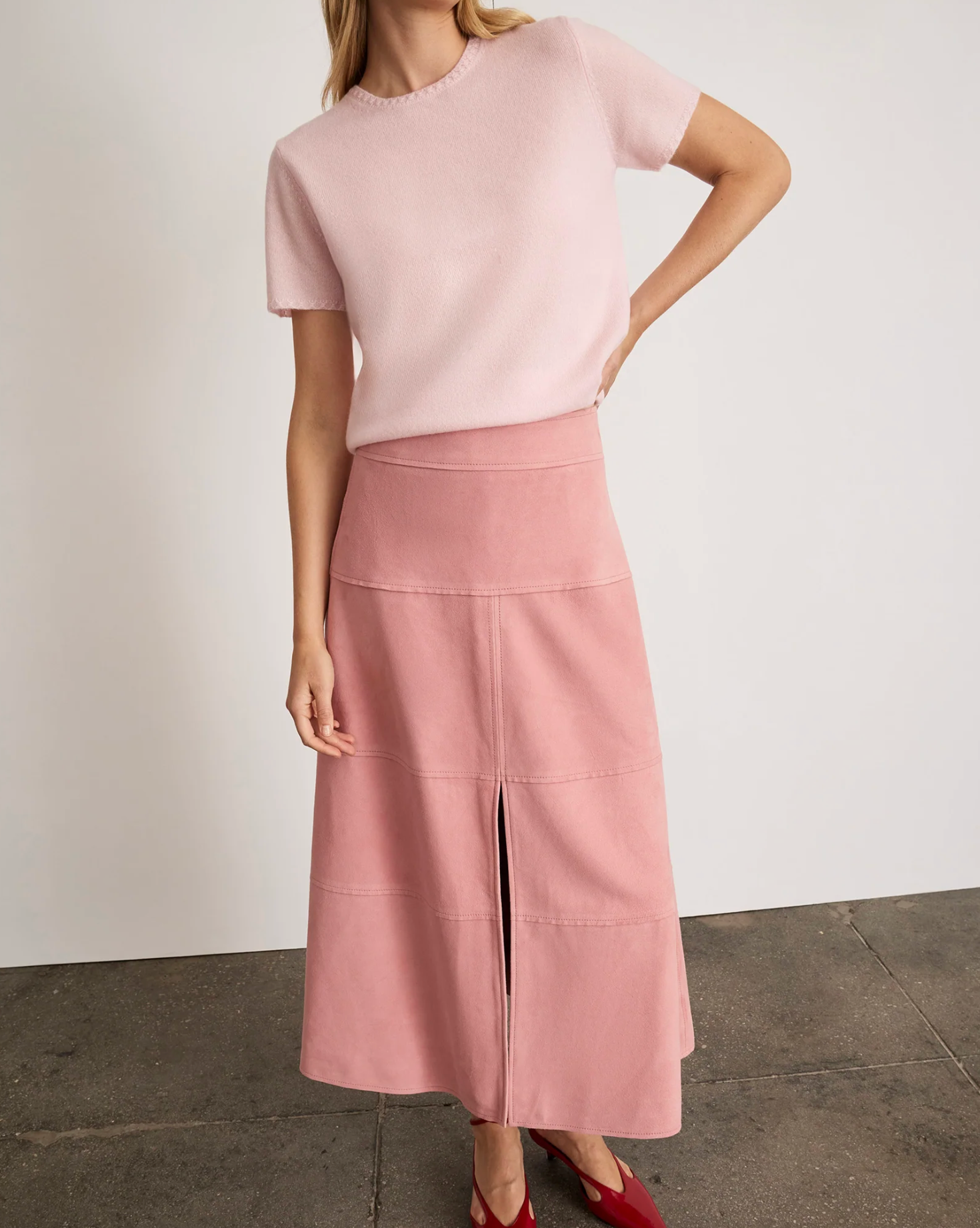 Suede Hudson Skirt in Baby Pink